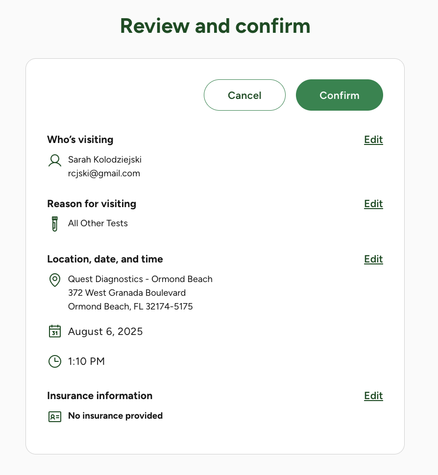 Quest streamlines the appointment booking process, and we will guide you every step of the way to ensure it's as effortless as possible.